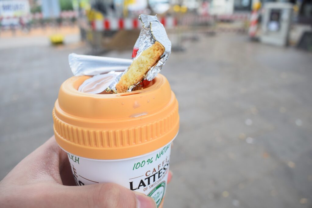 とりあえずカフェラテで我慢。これ以降、ドイツを出るまでカフェラテを買い続けます。