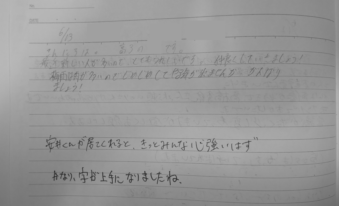[冒頭文] 2018年6月13(水) Y君