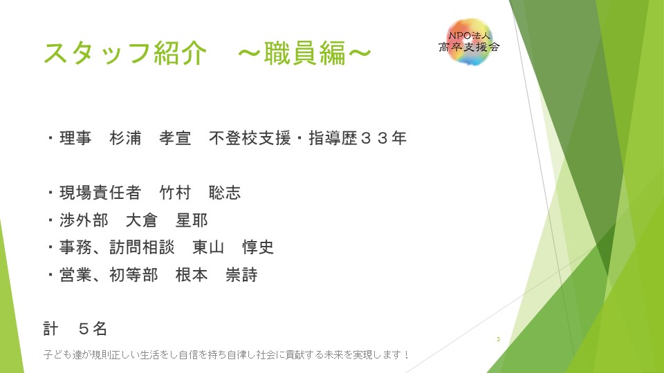 皆さんこんにちは!高卒支援会責任者の竹村です。
