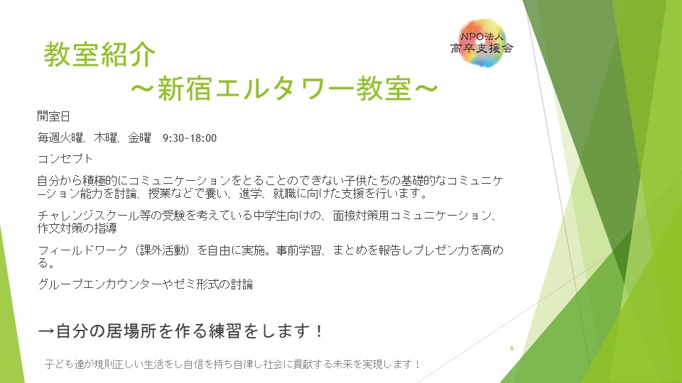 次は、教室紹介です。まずは、新宿エルタワー教室です。