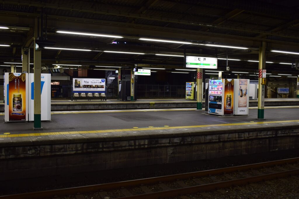 誰もいない風の写真ですが、写っているのは終夜運転を行っていない快速ホームで