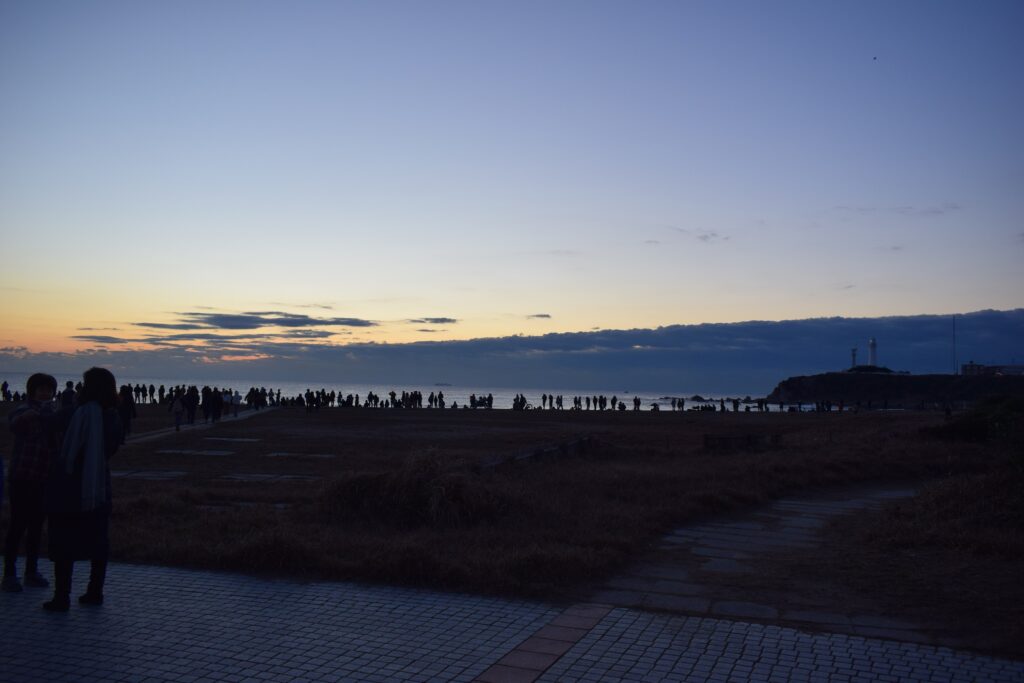 それでもこの人数は中々。右奥にみえる灯台が本命の犬吠岬ですが、
