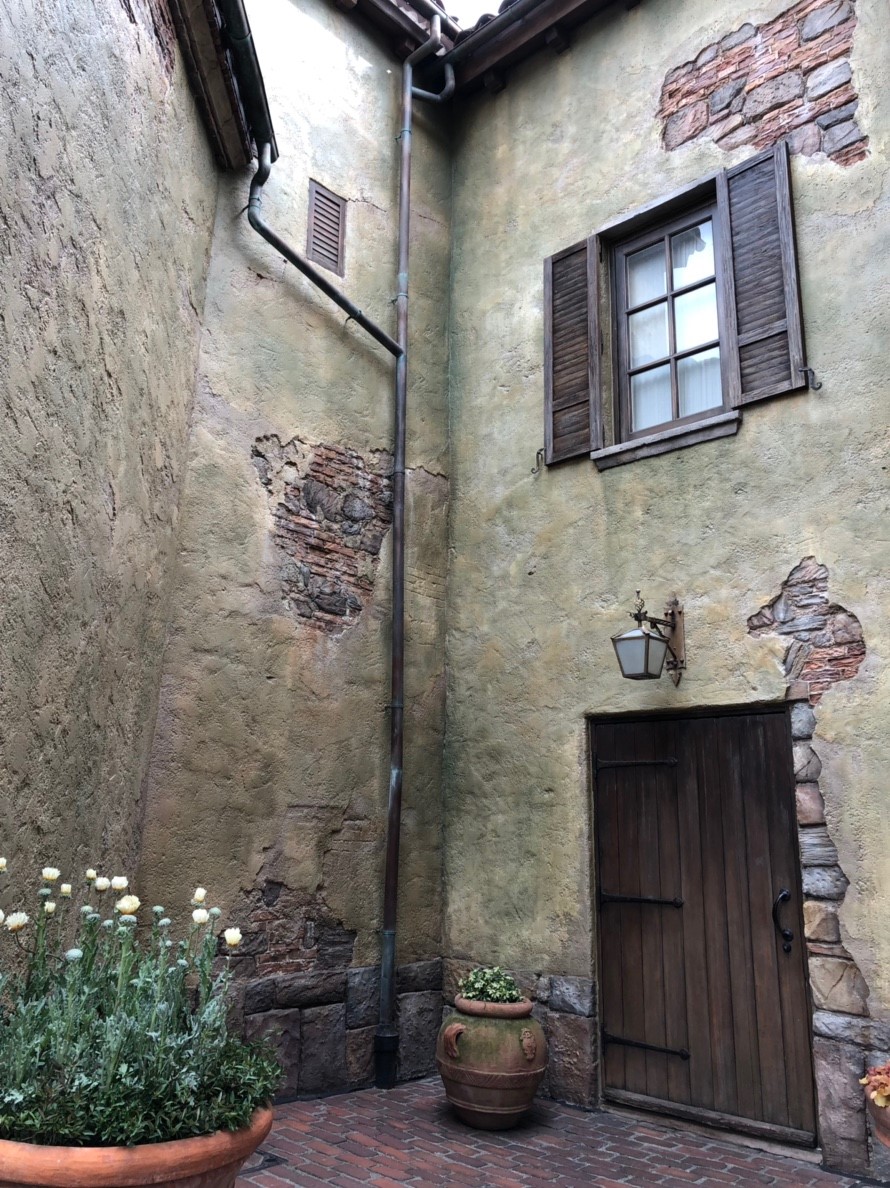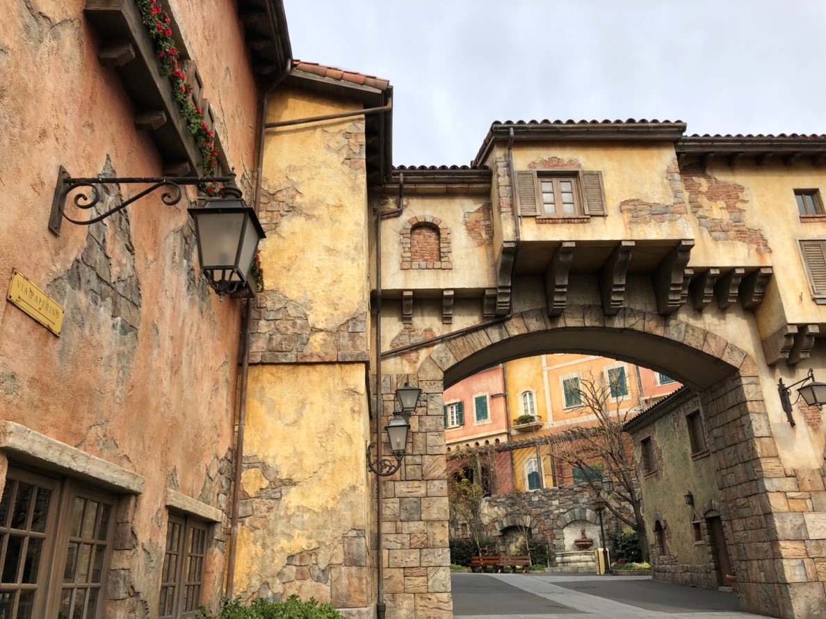 ヨーロッパ風の古い町並みがとても味わい深く、TDS内でもダントツで好きなエリアです。
