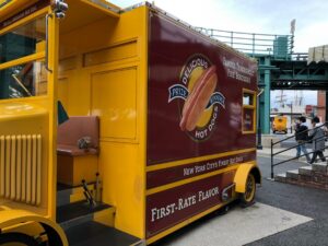 実はこちらのホットドッグワゴンさんですが、昼食にお世話になろうかどうか結構迷いました…。