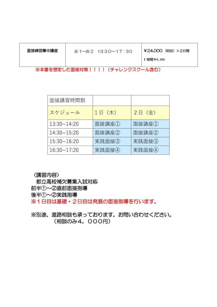 面接対策 夏期講習