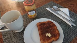 朝食は、コーヒーとトーストをいただきました。普段朝食は食べなかったのですが、カナダにいってから食べる習慣が身につきました。