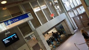20~30分くらいですかね。電車に揺られ、グランビルストリートという駅で降りました。