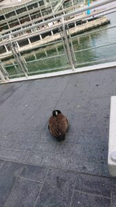 もう少し、歩くと船が見えてとてもきれいな景色が!カナダグースもいたので記念にぱちり。