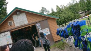 二人乗りのシーカヤックを選び、私はフィジークと、魚君とラマで分かれて乗りました。