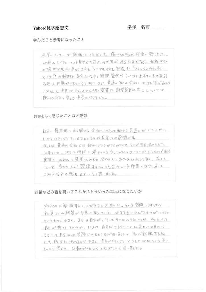 ヤフージャパン 担当者様から 生徒へのメッセージ