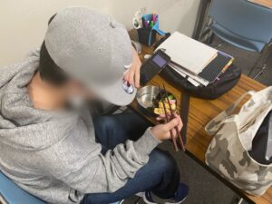 当会のお昼時間はご飯の時間です。外食組は半分ぐらいおり、生徒たちとのコミュニケーションのきっかけになったり、先生と一緒に食べに行くことも多いので、仲良くなるきっかけになります。