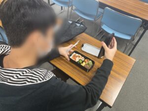 また、生徒たちの様子を見ていると、おいしそうにお弁当を食べている生徒たちもいます。お弁当を作っていただいている保護者様、ありがとうございます。全員おいしそうに食べています。