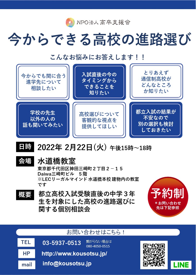 当会では今からでも出来る高校の進路選びのサポートを致します!