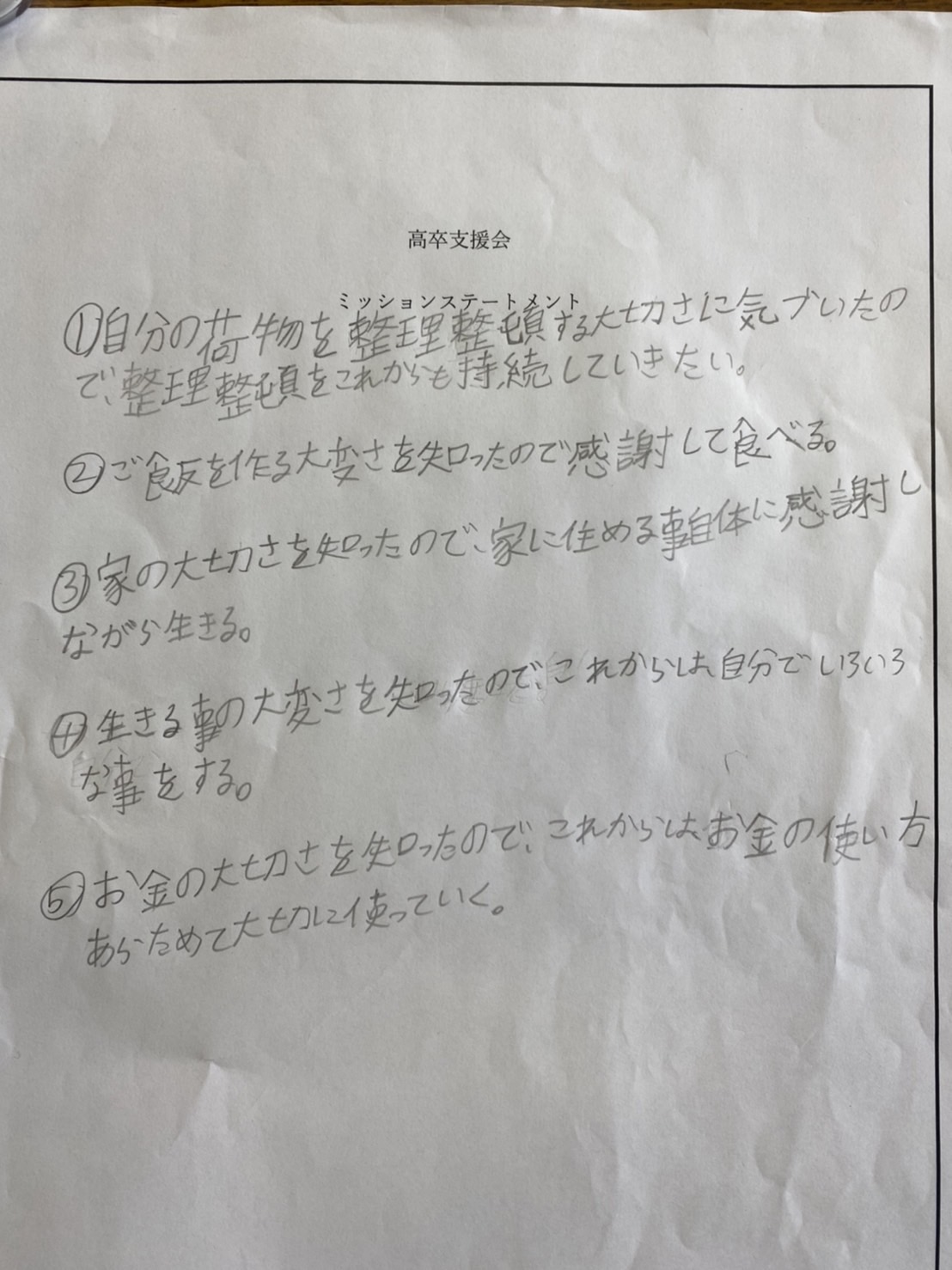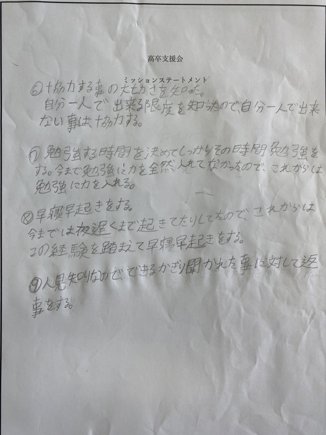 生活リズム合宿ではミッションステートメントの作成が大きな目標です。