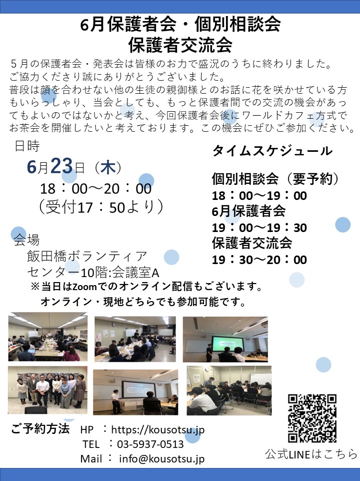 6月23日(木) 個別相談会・保護者会・勉強会