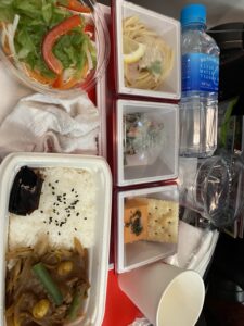 2時間ほどで、機内食が届き、食べ終わると割とすぐに寝入ってしまっていました。
