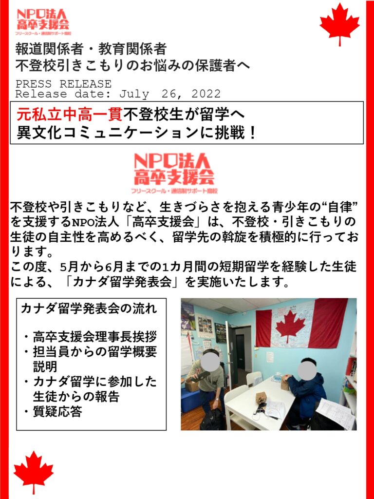 カナダ留学報告講演会を実施することが決まりました!