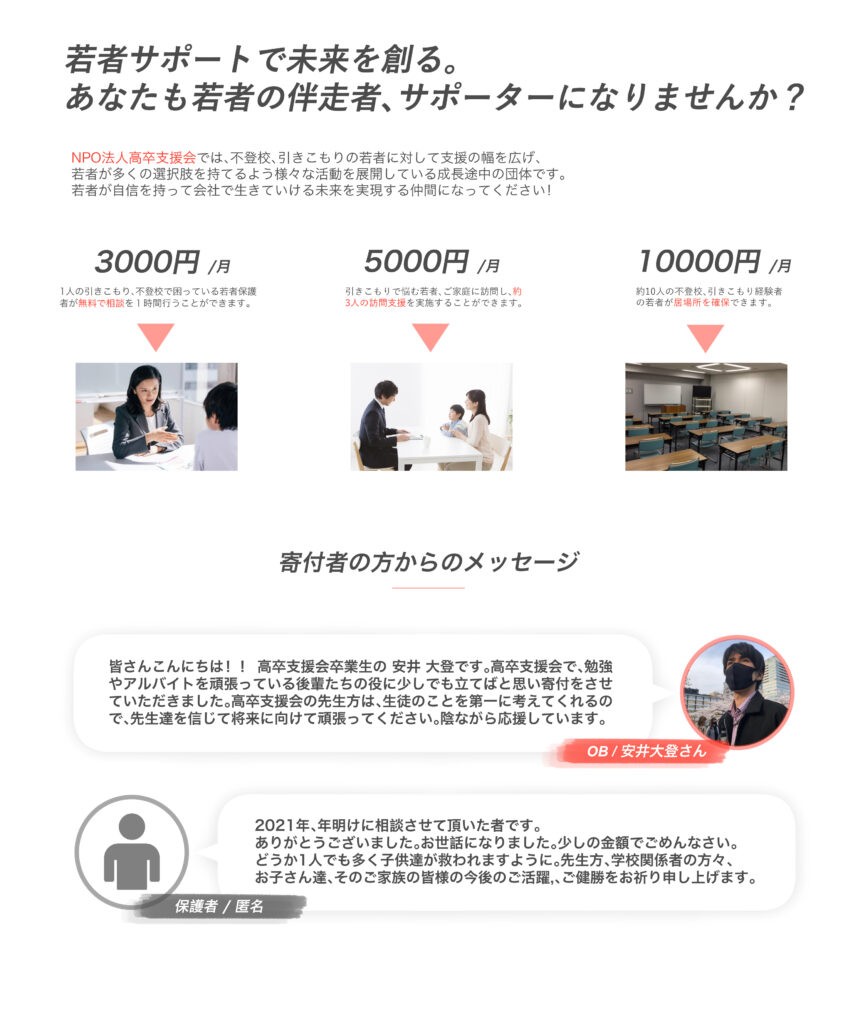 ご寄付 - 認定NPO法人高卒支援会