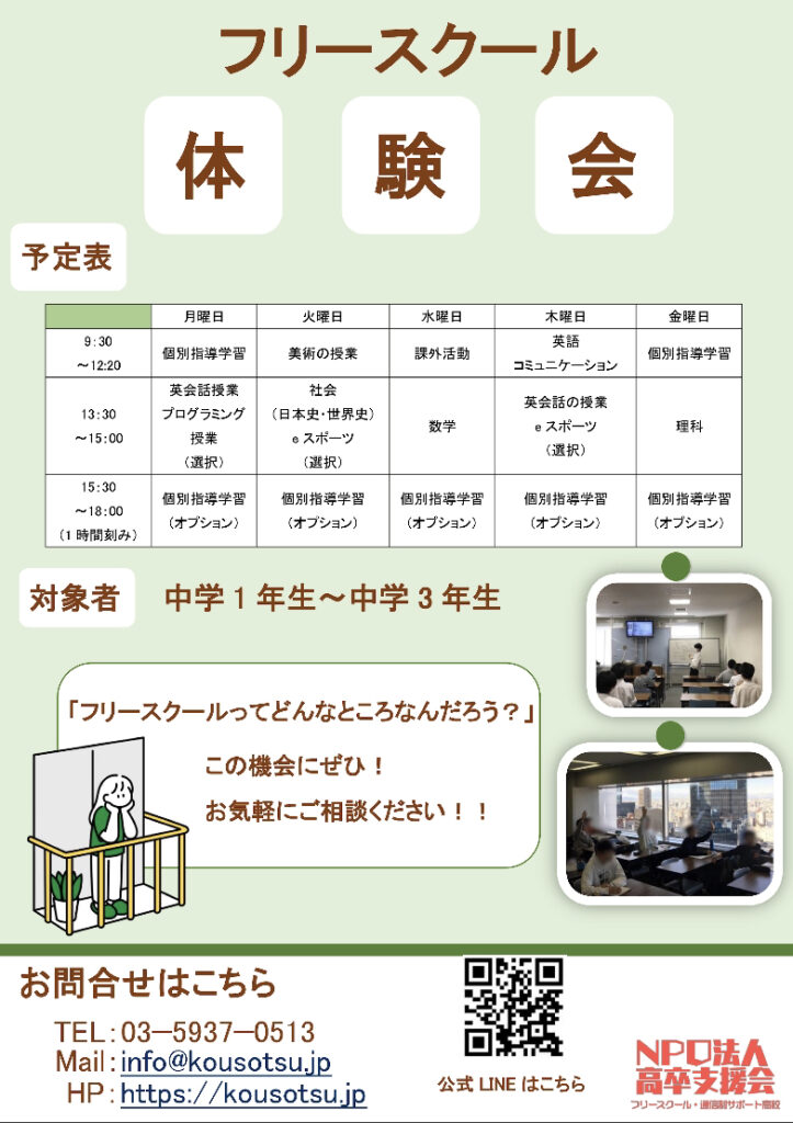 フリースクール体験、いつでもお待ちしております!