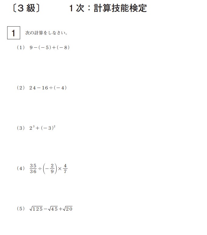 数検3級の基礎計算問題