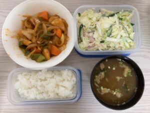 ごはん、酢鶏、コールスロー、味噌汁