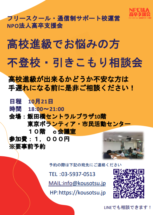 高校進級でお悩みの方 不登校・引きこもり相談会実施
