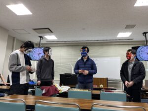 節分の4択クイズで正しいと思う答えの的(鬼A, B, C, D)に豆のパックを投げたり、試験(英検、TOEIC、大学入学共通テストなど)に向けた長文問題(内容は節分パーティのお誘い)を解いたり、節分のロールプレイをやったりしました。
