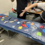 生徒たちに海の生き物の画像を見せて英語名を教えたあとはいざLet’s fish!!先生自ら一つ一つ丁寧に折った折り紙で楽しく釣りをしましょう♪