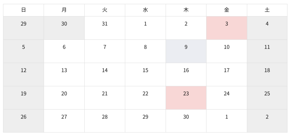 予約カレンダーからご希望の日を選択してください。