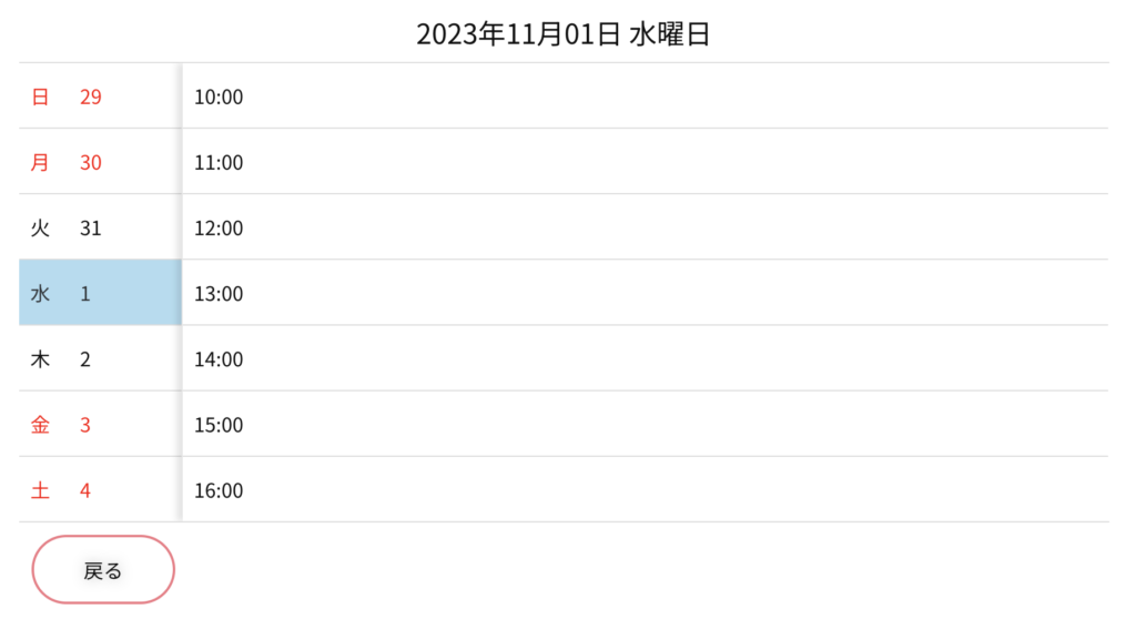 ご希望の時間帯を選択してください。